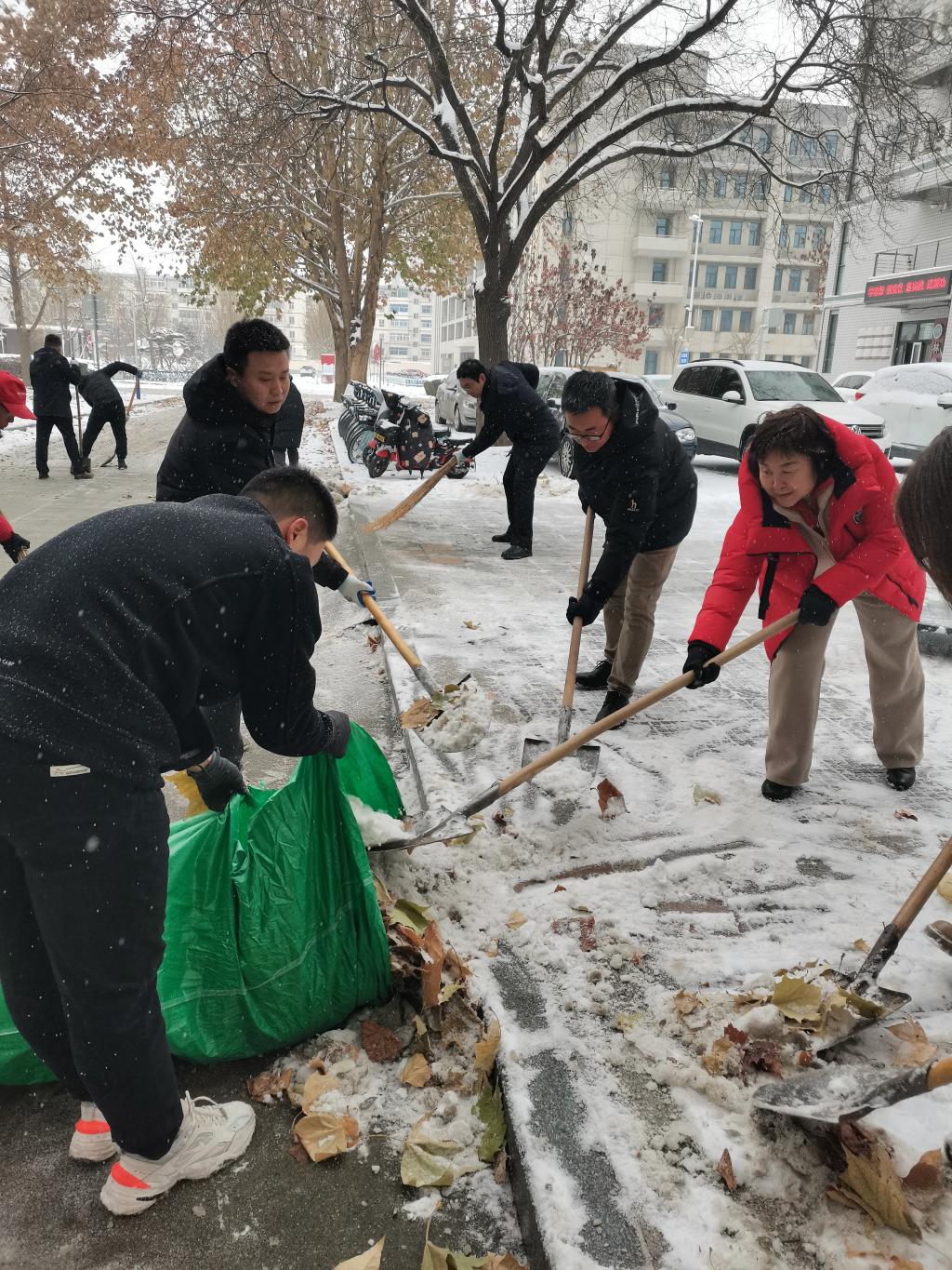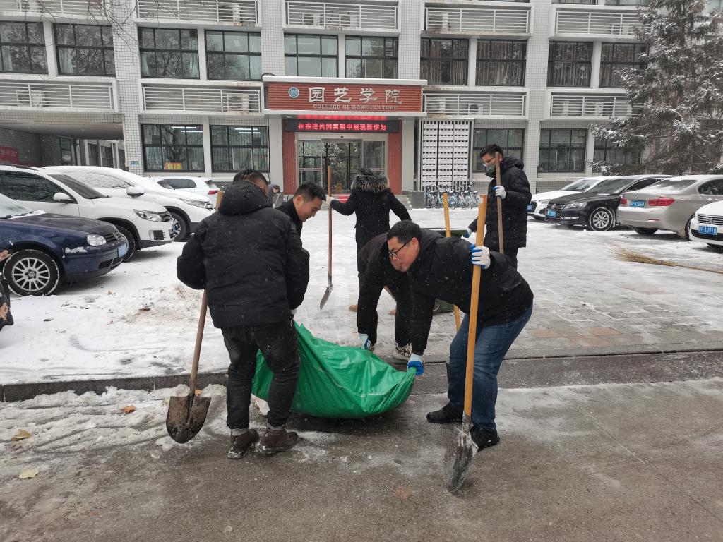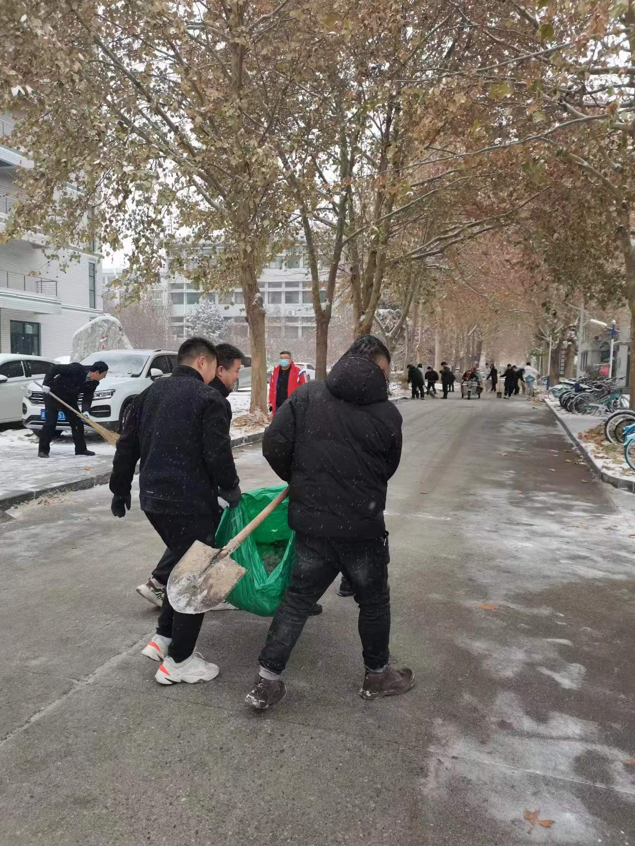 近日,保定初冬首场降雪翩然而至,给美丽的校园增添了新的色彩,大地银装素裹,美不胜收。为保障学院道路畅通及师生出入安全,12月14日、15日连续两天,我院党委书记张建恒代领师生开展义务扫雪除冰活动,大家不畏严寒,挥舞着铁锹、扫雪铲、扫帚开始对学院门口、周边道路等区域内的积雪进行清扫,师生齐心协力,快速高效率地完成积雪清理,师生共同忙碌的身影构成了一道亮丽的校园风景线。