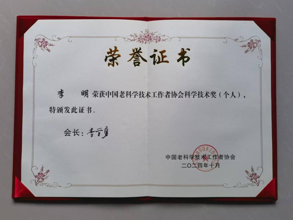 10月16日,2024年河北省老科技工作者协会成立40周年座谈会在石家庄举办,我院李明教授被授予2024年度中国老科学技术工作者协会科学技术奖。中国老科学技术工作者协会荣誉会长、原全国人大常委会副委员长陈至立等领导参加活动并为获奖同志颁奖。