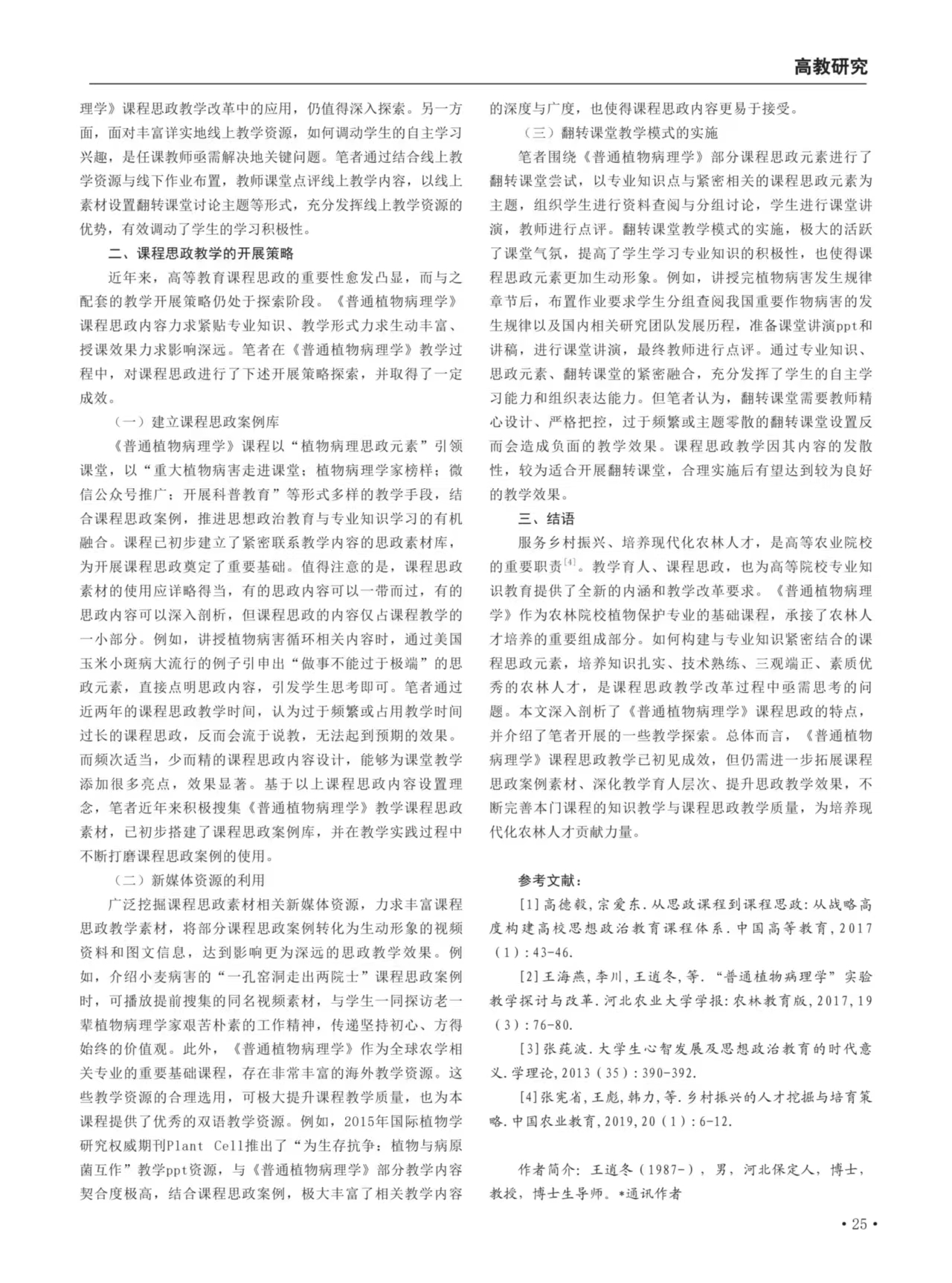 思政论文项目——《普通植物病理学》课程思政教学开展策略初探