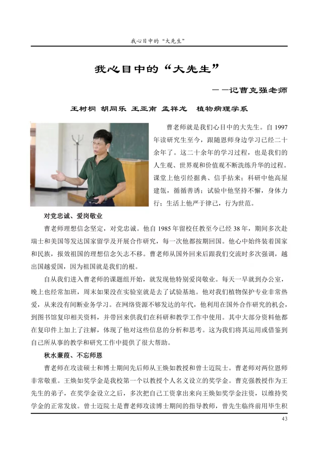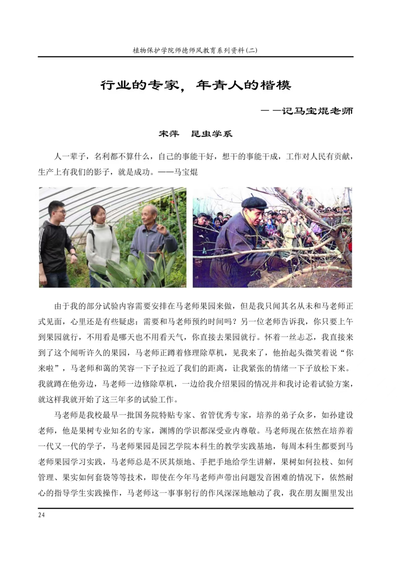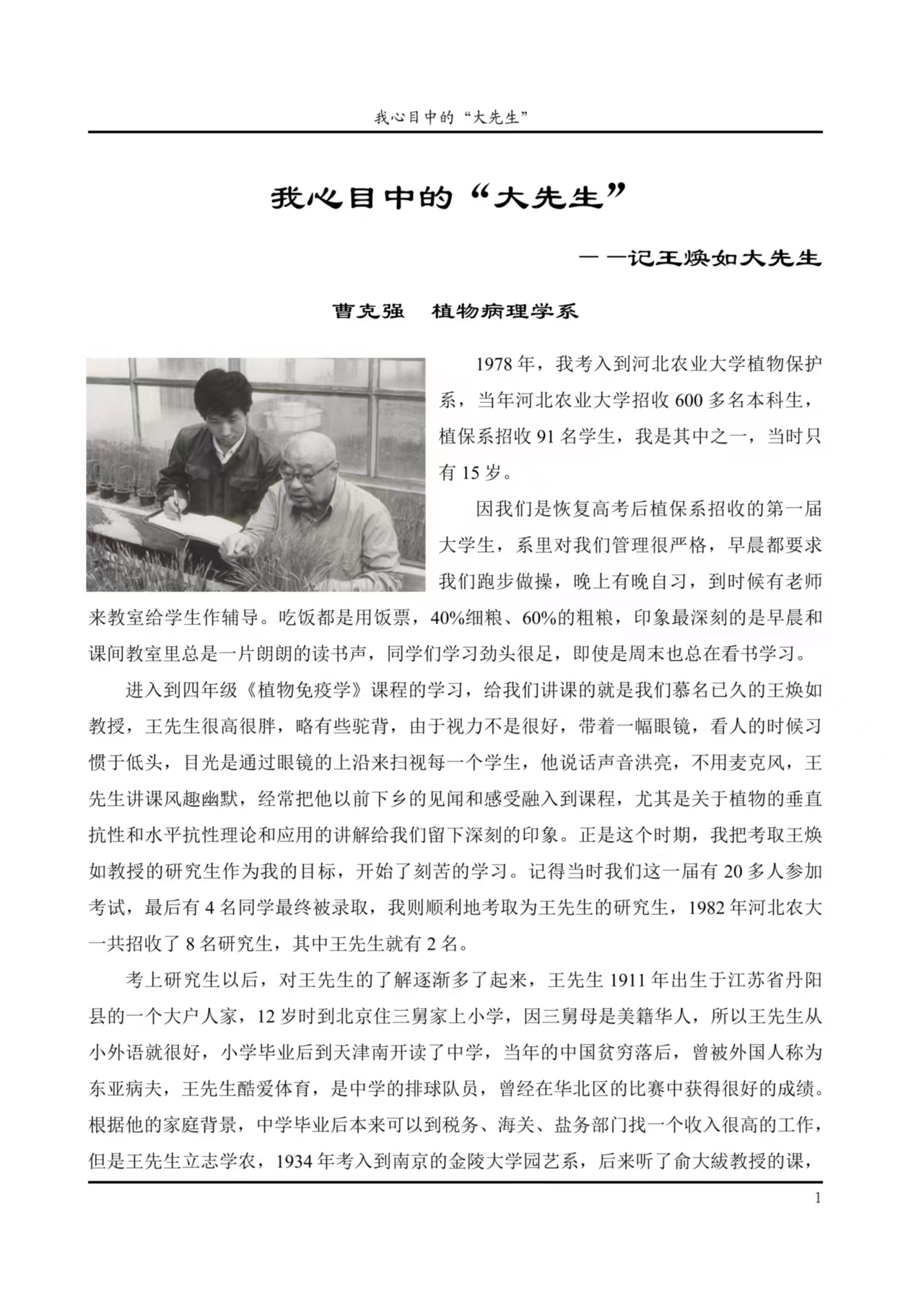 思政品牌成果——燃灯者:记植物保护学院王焕如大先生