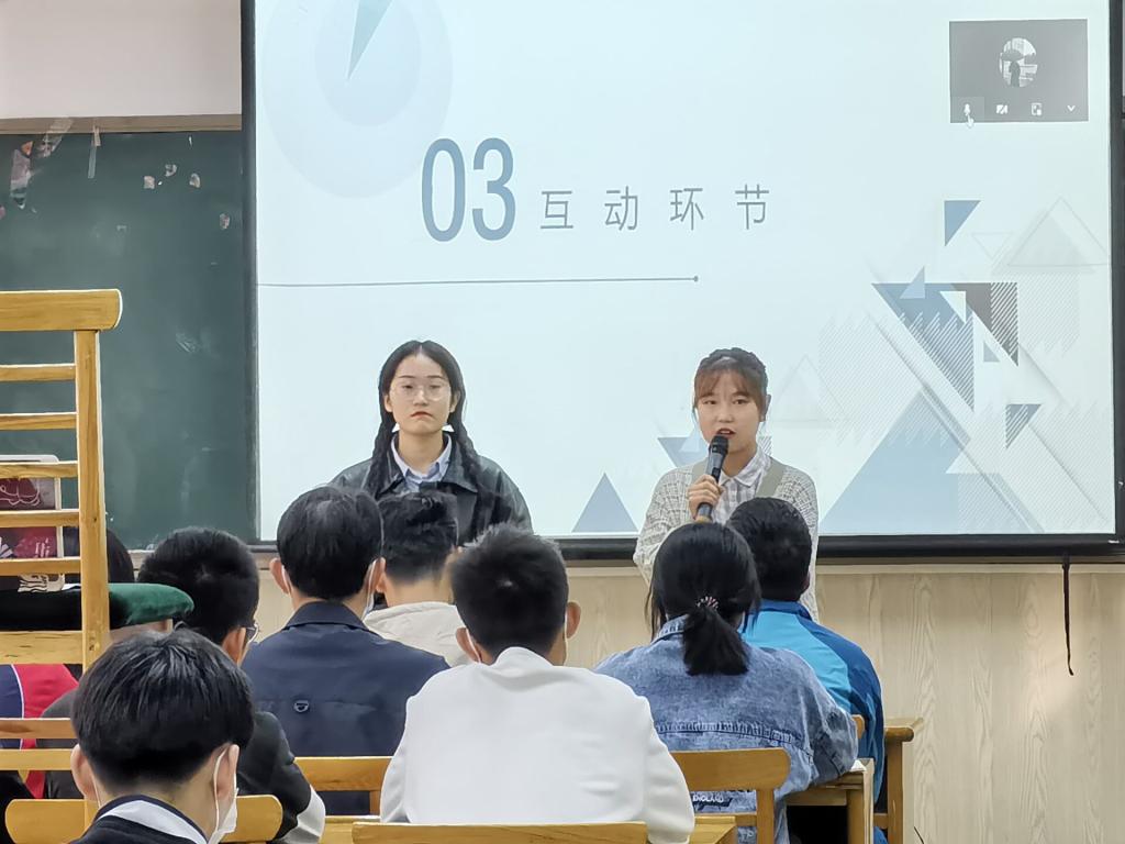 会上,两个分享者结合自身获得国家奖学金的经验,围绕如何脚踏实地、更加有效的学习这一主题进行了交流。分享者帮助同学们明确学习目标,做好学习规划,不要沉迷于游戏,让大学生活更加丰富;提醒同学们关注各类科技创新活动的信息并积极报名参加,希望同学们斩获科技比赛成果。在互动环节,同学们积极与两位分享者在学习方法、能力培养、争先创优等方面进行了深入交流,为同学们消除了疑虑,指明了方向。