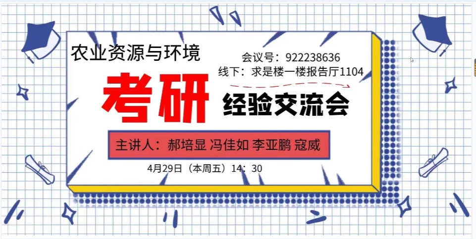 4月27日至4月30日,我院在求是楼1104、腾讯会议线上线下同步举办了“链接未来 照亮青春“考研经验交流会。交流会邀请考研成功上岸的13名优秀学子向同学们分享考研经验,辅导员老师及19级、20级同学300余人参加。