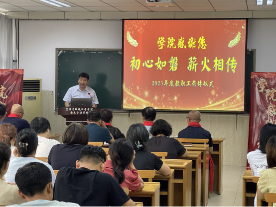 9月7日下午,教师节来临之际,我院隆重举行2023年度教师荣休仪式。学院领导班子、全体教职工、部分学生代表参加活动,副院长耿丽敏主持活动。