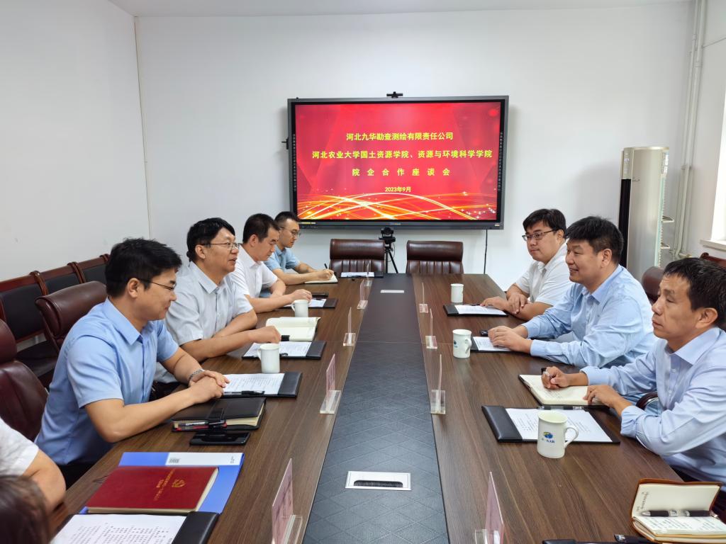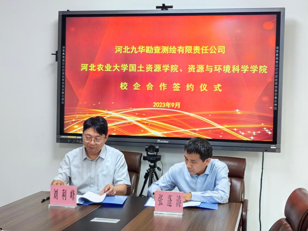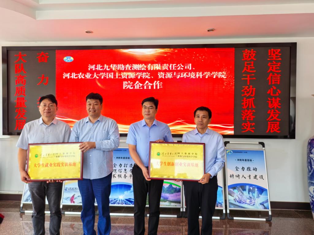 近日,资环学院、国土学院与华北地质勘探局五一九大队(河北九华勘查测绘有限责任公司)签署院企合作协议,并举行“大学生就业实践实训基地”“大学生创新创业实训基地”授牌仪式。学院党委书记赵增锋、院长张蓬涛、学院党委副书记褚宝良及教师代表,华北地质勘探局五一九大队党委副书记、队长刘利峰,副队长王文忠、杨学明,以及公司核心部室负责人等参加活动。