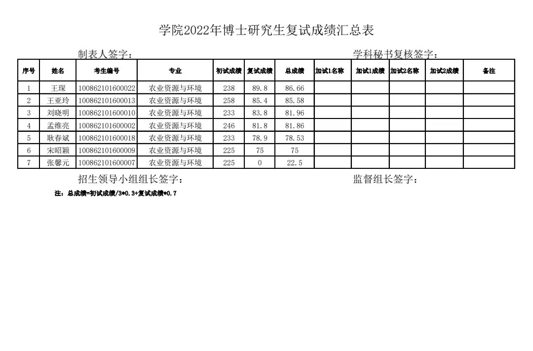 发布者:资源与环境科学学院2022年博士复试成绩汇总表 时间:2017-06-16 22:04:10 浏览: