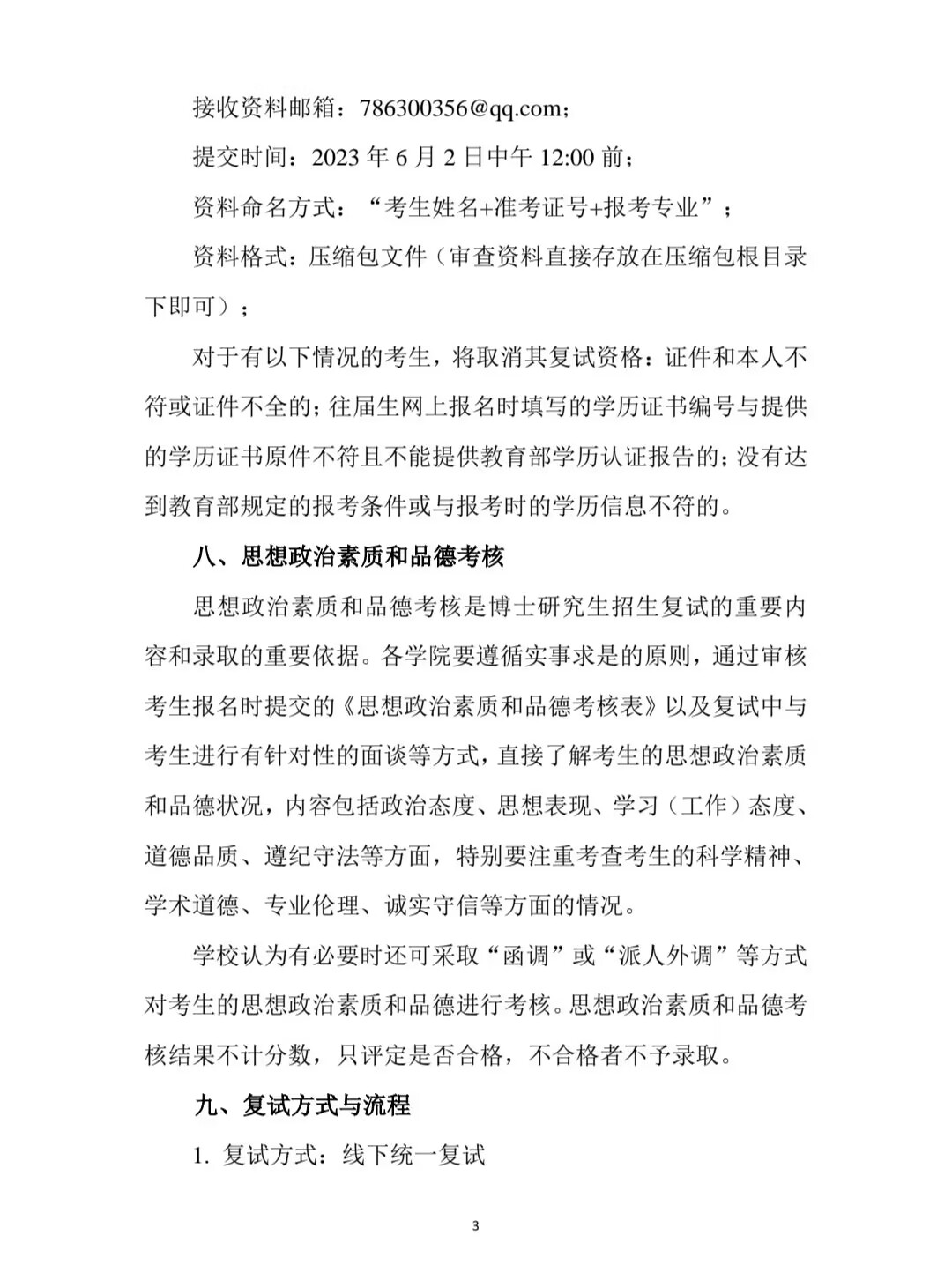 2023年博士研究生复试录取工作实施细则