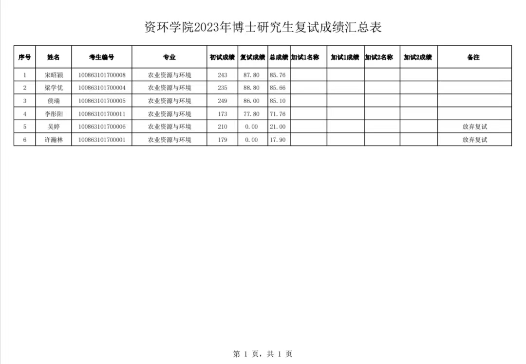 资环学院2023年博士研究生复试成绩公示(1).pdf