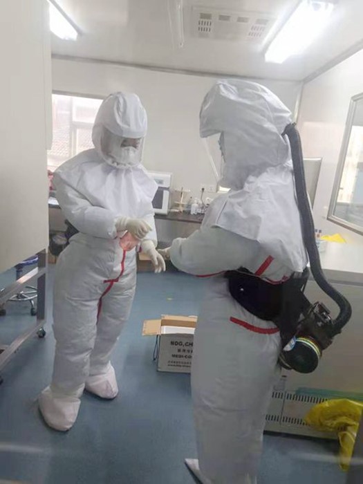 由于林区公共检验检测中心、疾控中心实验室男同志较少,一到林区,贾肇一和他的团队主动承担了夜班检测工作,穿着防护服,头戴正压呼吸面罩,身上背着两公斤重的动力送风机。为了加快核酸检测进度,保证第一时间出具检测结果,为临床诊断提供更有力的技术支撑及科学依据,加班到凌晨是家常便饭。