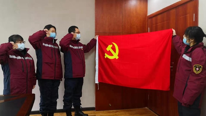 2月2日上午8:30,贾肇一、朱怡青、田美娜3位党员举行了简短的临时党支部成立仪式,贾肇一任支部书记。支部成员举起右手、面向党旗宣誓,并重温出征誓言:“不忘初心、牢记使命!驰援湖北,敢打必胜!”贾肇一跟大家强调,在一线紧张工作的同时,不能忘记学习和思想政治建设,要及时向上级党组织进行工作和思想汇报,要与支援林区的党组织紧密联系在一起,要在战疫中亮身份,用实际行动践行誓言。