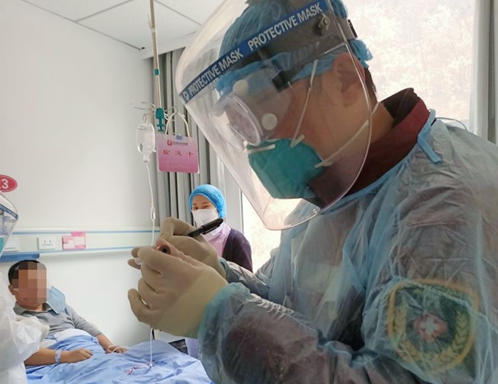 他,担任第一批支援湖北应急检测队临时党支部书记,在战地树起党员旗帜,身体力行,也不忘扩大组织的力量。