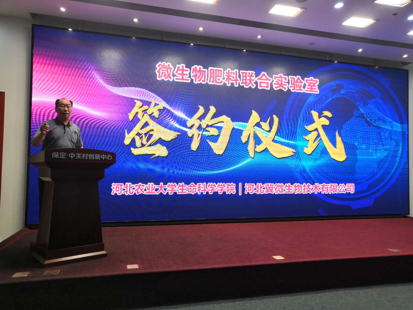 6月8日,我院与河北冀微生物技术有限公司共建的“微生物肥料联合实验室”签约和授牌仪式在保定·中关村举行。学院负责同志和相关教师参加了签约授牌仪式。