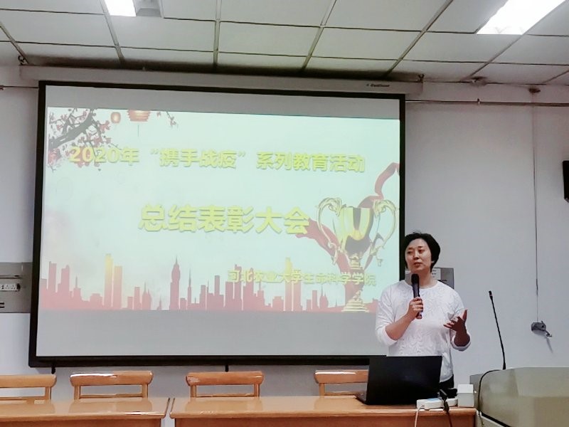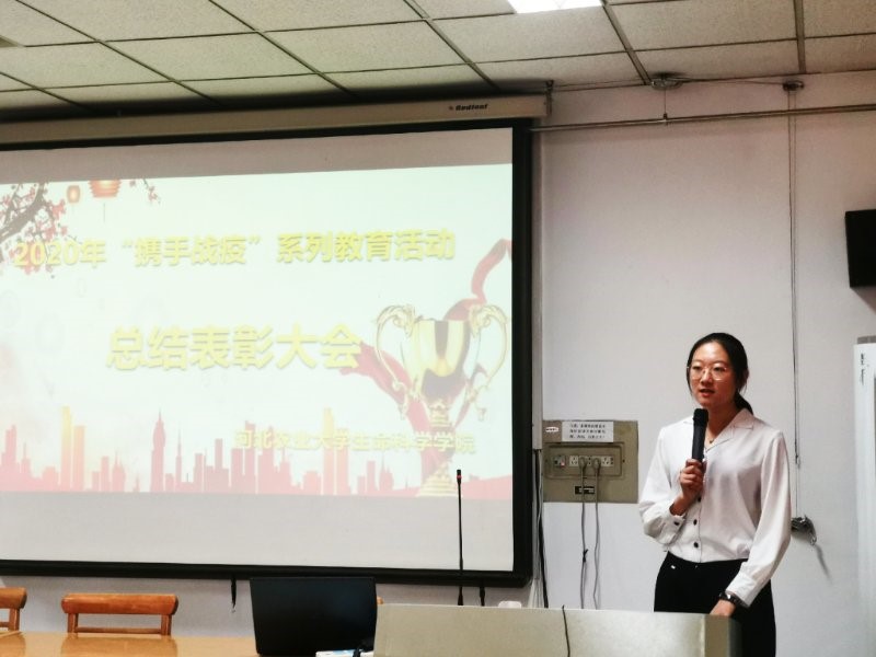为促使学生在疫情期间不放松学习,在提升自身防疫意识的同时发现感动、传递温暖,增强社会责任感和使命感,生命科学学院在2020年上半年开展了“停课不停学,打卡进行时”、“我的专业我来说”、“战疫青春,心向党”、“‘疫’起听温暖微团课”、战疫花式标语征集等一系列学习教育活动,活动覆盖全员,教育效果显著。本学期召开此次大会,一方面总结活动开展经验和成果,对优秀个人和集体进行表彰,另一方面记录成长,传递温暖,鼓励学生坚定民族自信,发扬战疫精神,全力投入新的学习生活。总结表彰会上,生物科学专业1701班孙慧颖同学作为学生代表发言,深情讲述了疫情期间志愿服务的感受和感动。学院党委副书记陈靖充分肯定了同学们的成绩和工作,要求大家在常态化疫情防控阶段保持战疫意识,在新学期学习生活中延续战疫热情,在困难和压力面前发扬战疫精神,展示青春风采,践行青年担当。
