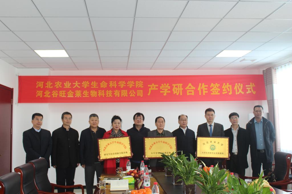 3月21日,18luck新利手机版iso 生命科学学院与河北谷旺金莱生物科技有限公司产学研合作签约授牌仪式在保定市望都县公司总部举行。创新创业教育指导中心负责人、生命学院主要负责人、教授等,谷旺金莱公司贾春喜总经理,望都县有关部门负责人出席活动。