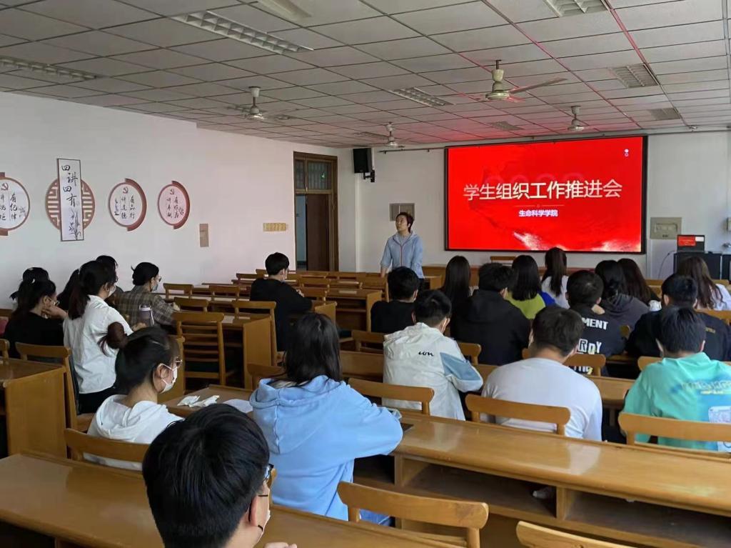 5月1日,生命科学学院召开学生组织工作推进会,学院党委副书记陈靖主持会议,学院全体学生组织负责人及主要学生干部到场参加。