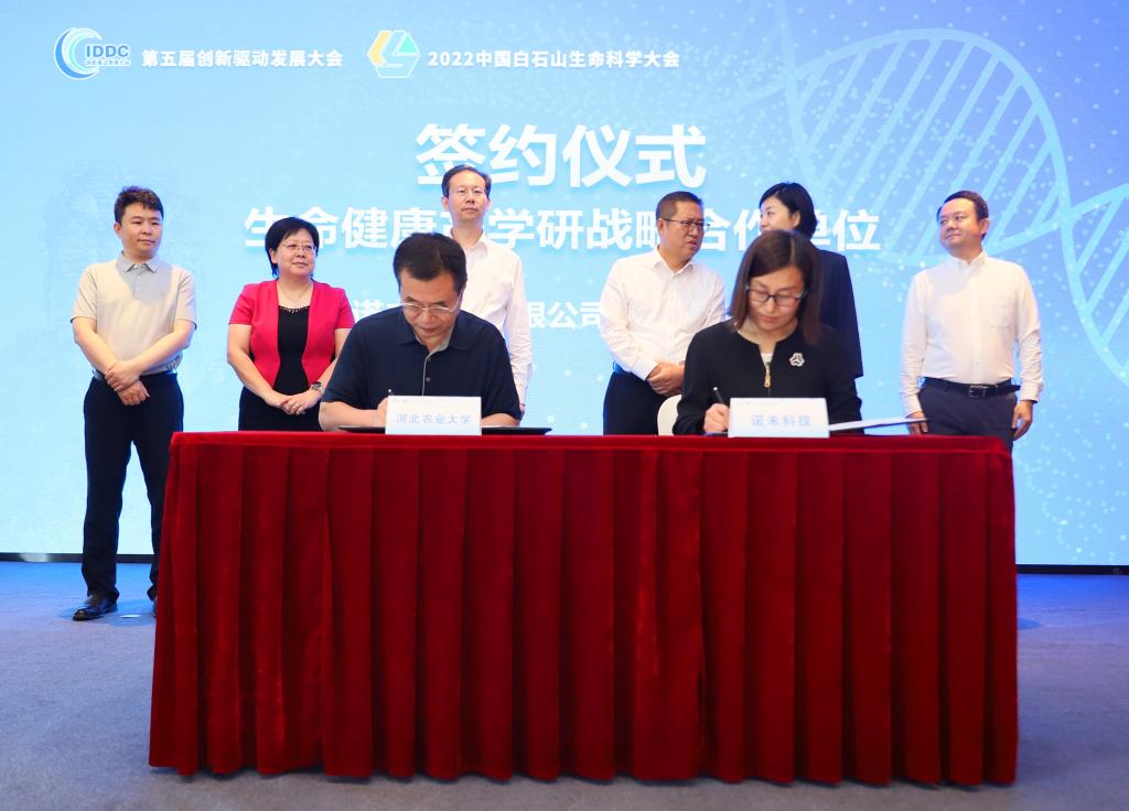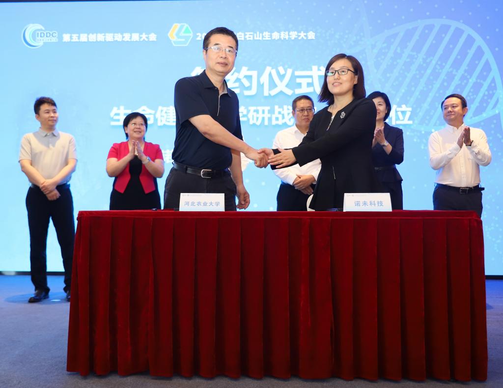 近日,生命科学学院受邀参加保定市第五届创新驱动发展大会细胞产业与精准医疗研讨会,会议聚集细胞及精准医疗领域前沿专家、重点高校代表及医疗卫生领域代表等优质资源,共同探讨细胞产业与精准医疗的科学前沿、关键技术、临床转化以及产业化等问题。保定市政府副市长安悦民、美国医学与生物工程院院士文学军共同为保定市细胞与再生医学技术创新战略联盟揭牌。生命科学学院院长张伟与保定诺未科技有限公司总经理孙志娟代表签约“生命健康产学研战略合作单位”。