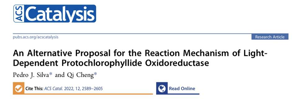 《Analternativeproposal for the reaction mechanism of light-dependent protochlorophyllide oxidoreductase》的研究论文。该团队第一作者是葡萄牙Porto大学的Pedro Silva博士,程奇教授为共同通讯作者。